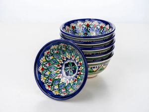 Посуда ручного окраса выполнена лучшими мастерами Узбекистана. Ручная работа от изготовления до окраса. Посуда выполнена из глины(керамики) или фарфора(Серии Пахта). У нас представлены такие известные серии посуды как: синий мехроб, красный мекроб, оранжевый мехроб, желтый мехроб, гранат, коричневый карандаш, зеленый карандаш и т.д.С такой посудой процесс чаепития обретает особый ритуал, а подача на общее блюдо в центр стола сделает трапезу более душевной и процесс более семейным! Экологически чистая посуда с яркими красками окраса не оставит равнодушной хозяйку!