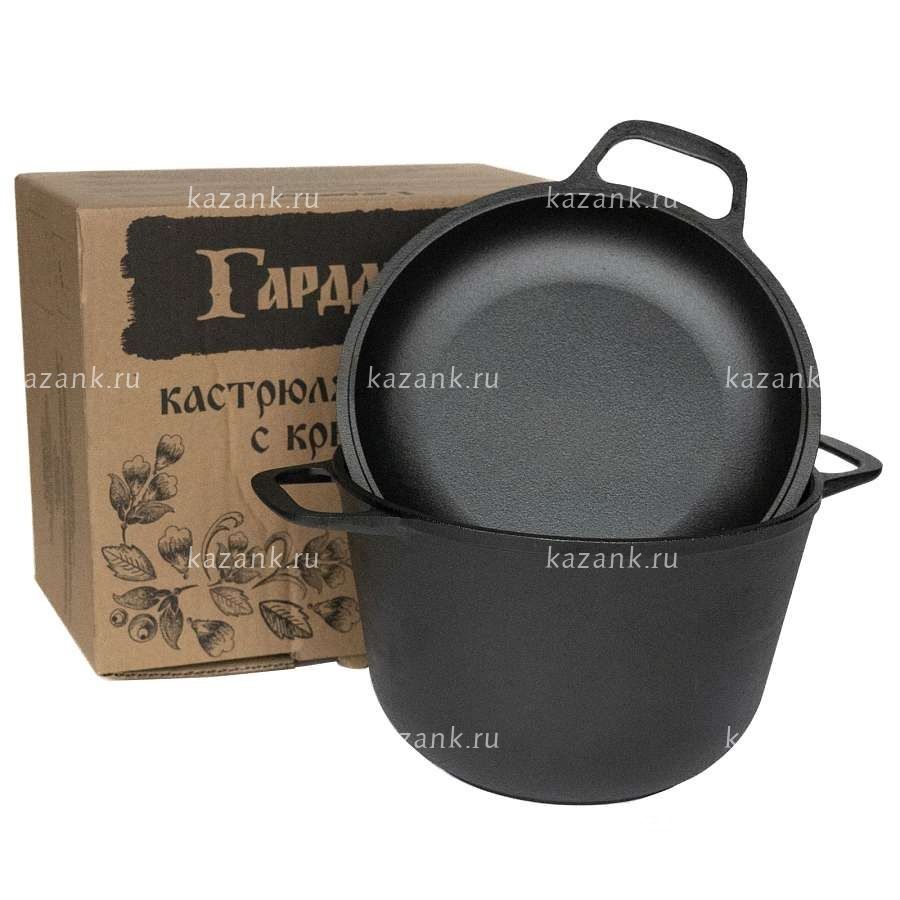 Чугунная кастрюля на 4л. Гардарика выполнена методом литья. Наличие чугунной крышки-сковороды позволяет использовать данную посуду для жарки и в духовом шкафу(например выпекать хлеб). Уникальные свойства чугуна позволяют пользоваться кастрюлей на всех видах плит, в том числе и индукции. Заводское производство и строгий контроль качества исключает наличие дефектов.