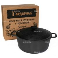 Чугунная кастрюля на 5л Гардарика выполнена методом литья. Наличие чугунной крышки позволяет использовать данную посуду в духовом шкафу(например выпекать хлеб). Уникальные свойства чугуна позволяют пользоваться кастрюлей на всех видах плит, в том числе и индукции. Заводское производство и строгий контроль качества исключает наличие дефектов.