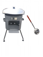 Печь без трубы и дверцы, казан чугунный, шумовка или половник