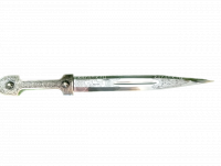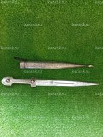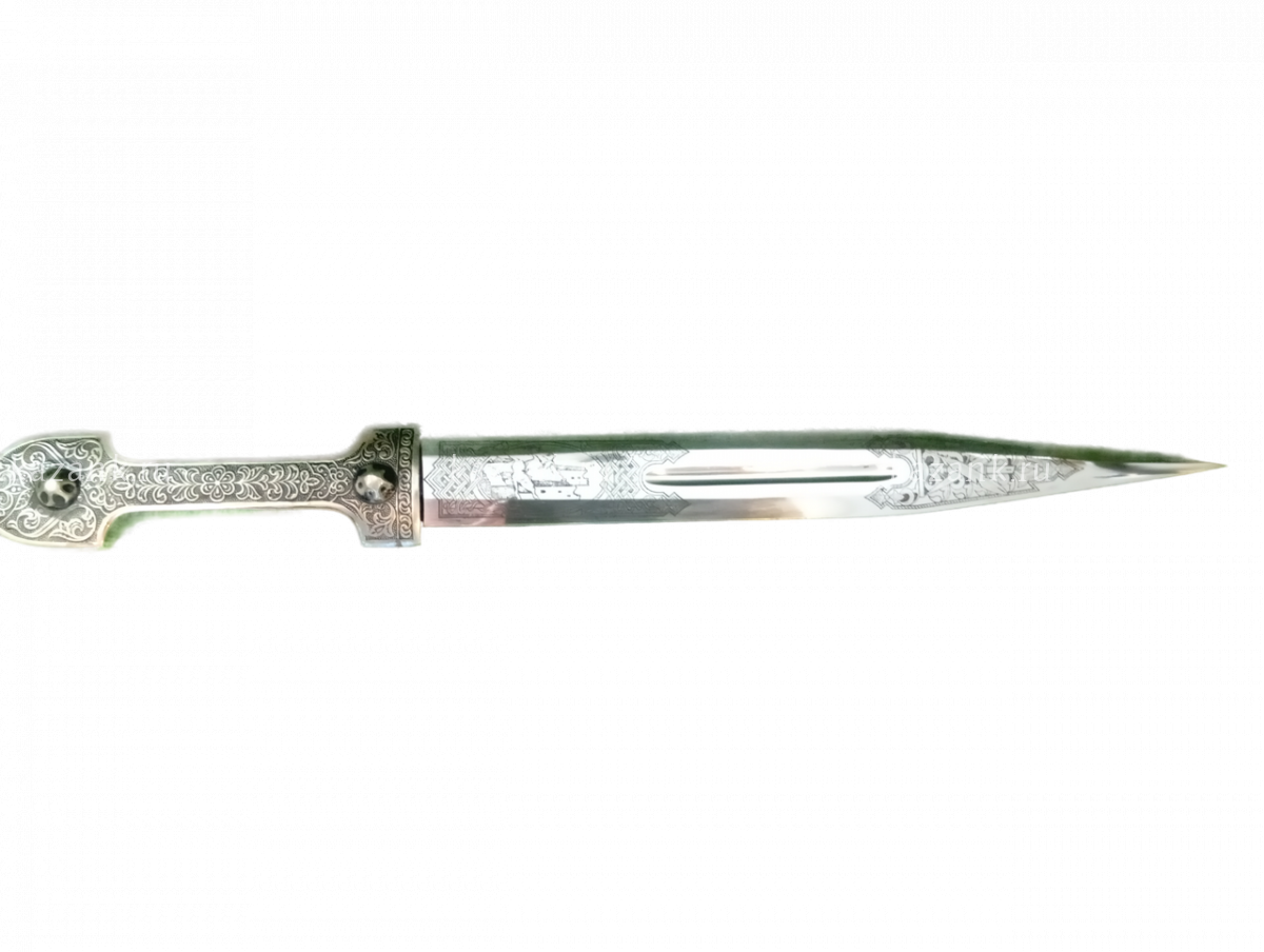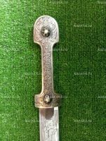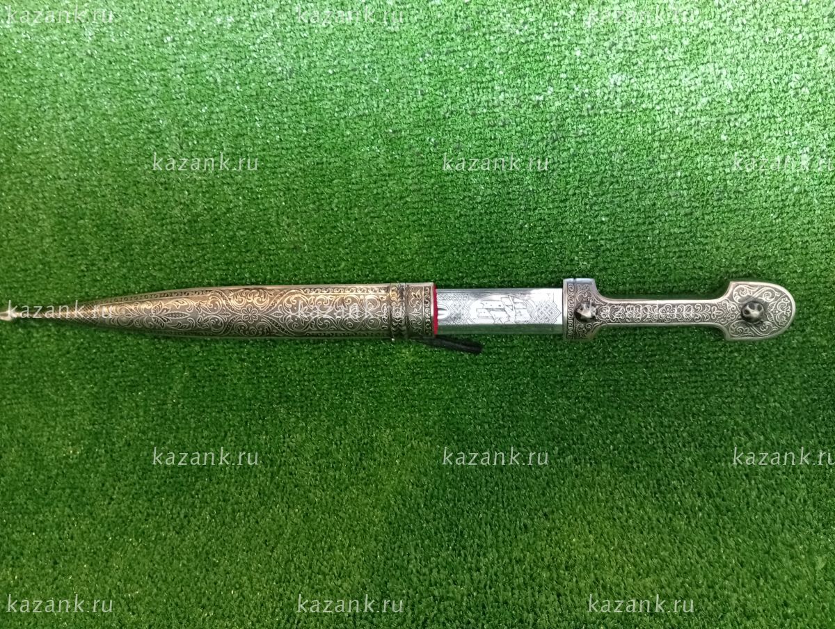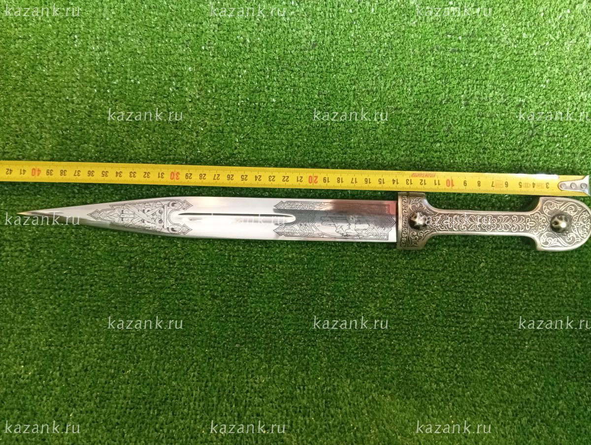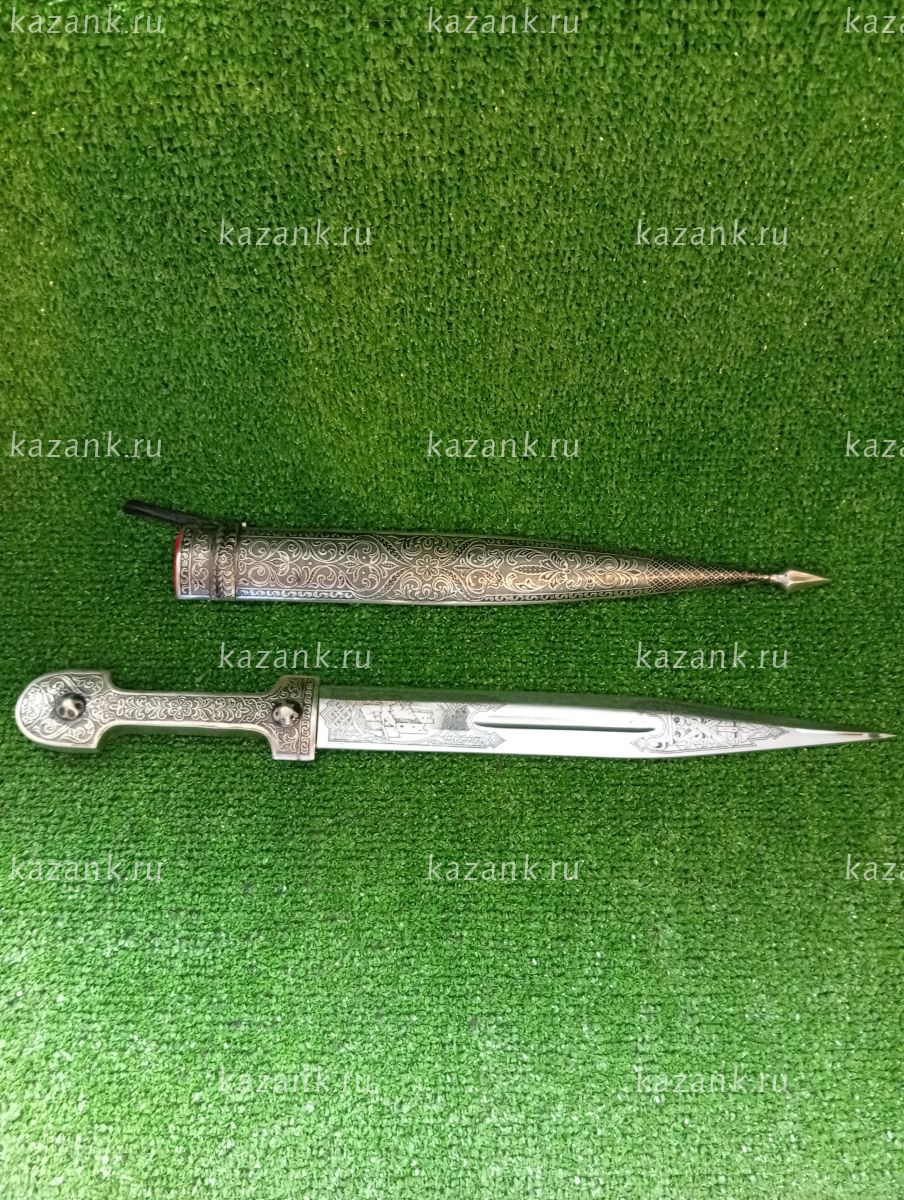 Кинжал сувенирный сделан в России г.Кизляр, сталь 65Х13. Материал рукояти и ножны мельхиор(ножны могут быть комбинированные кожа/мельхиор). Лазерная гравировка. Кинжал является сувенирным изделием и не относится к холодному оружию.