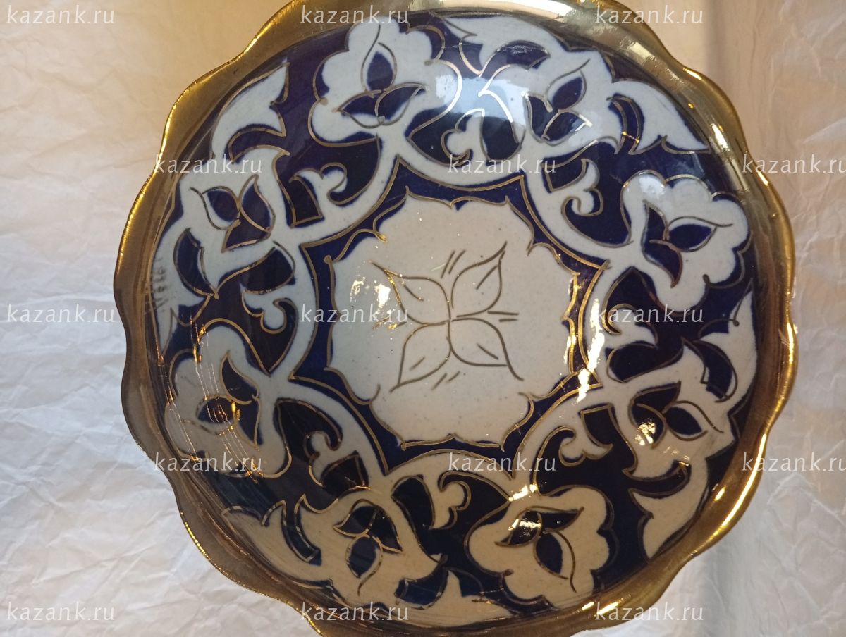 Рисунок наносится узбекскими мастерами вручную и смотрится очень красиво и, по-своему, изящно. Эта посуда подходит как для повседневного использования, так и для праздничного стола.