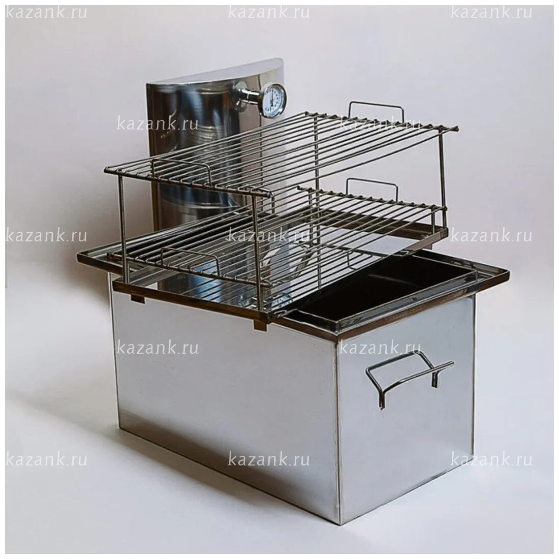 Коптильня универсальная из нержавеющей стали с гидрозатвором для приготовления дома и на улице. Две решетки и поддон.