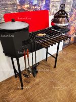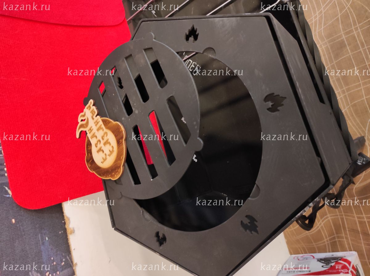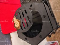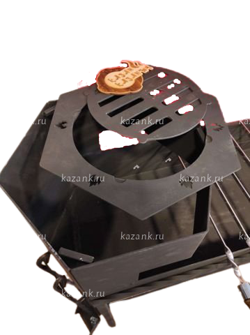 Мангал выполнен из стали 3мм ГОСТ с нанесением термоэмали до 1200 градусов. Мангал выполнен на лазерном станке что исключает заусенцы и неровности. Подказанник подходит для казанов от 3 до 12 литров,чайников и сковородок за счет съемной площадки. Съемные ноги позволяют перевозить мангал в легковом автомобиле. Ножки фиксируются болтами, а дровница связывающая их придает устойчивости всей конструкции. К данной моделе так же отдельно можно приобрести полку, совок с кочергой, шампура и казан.