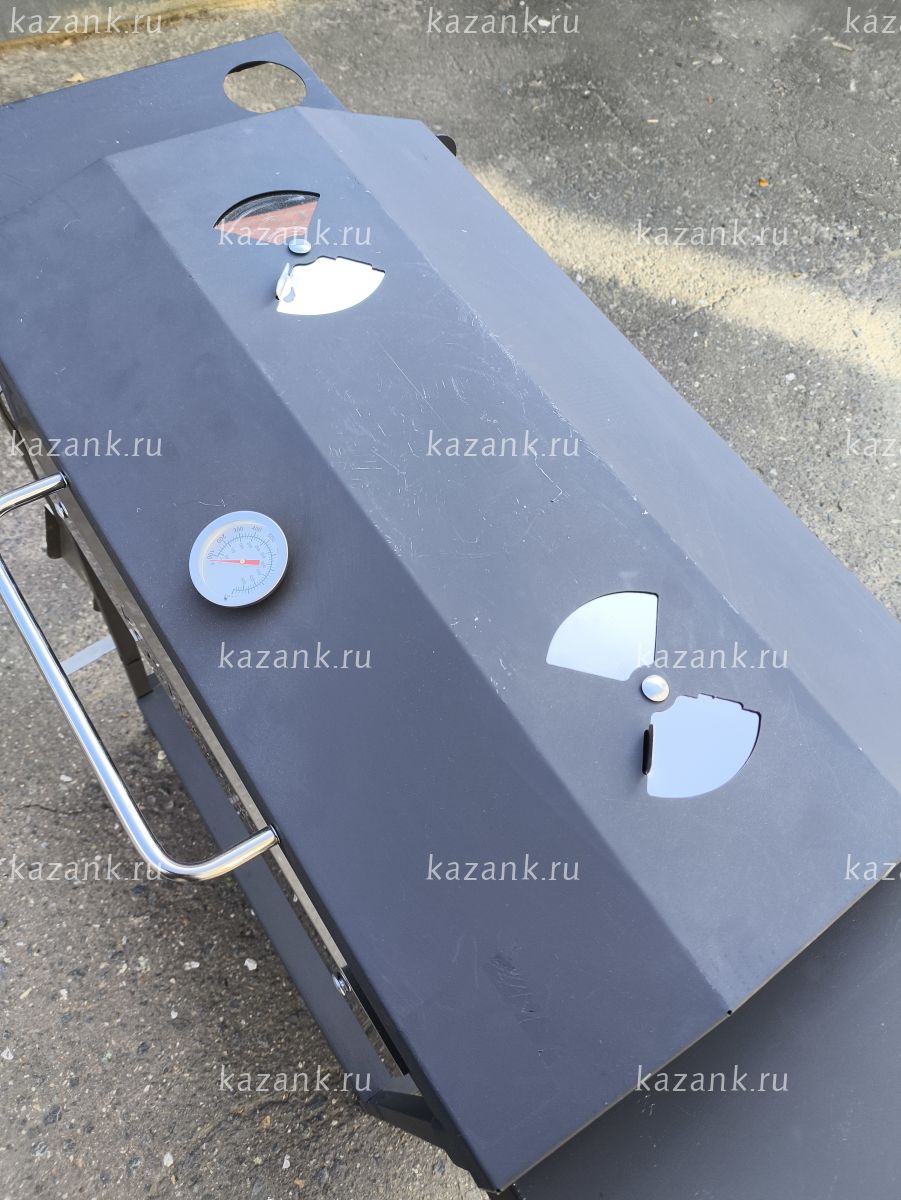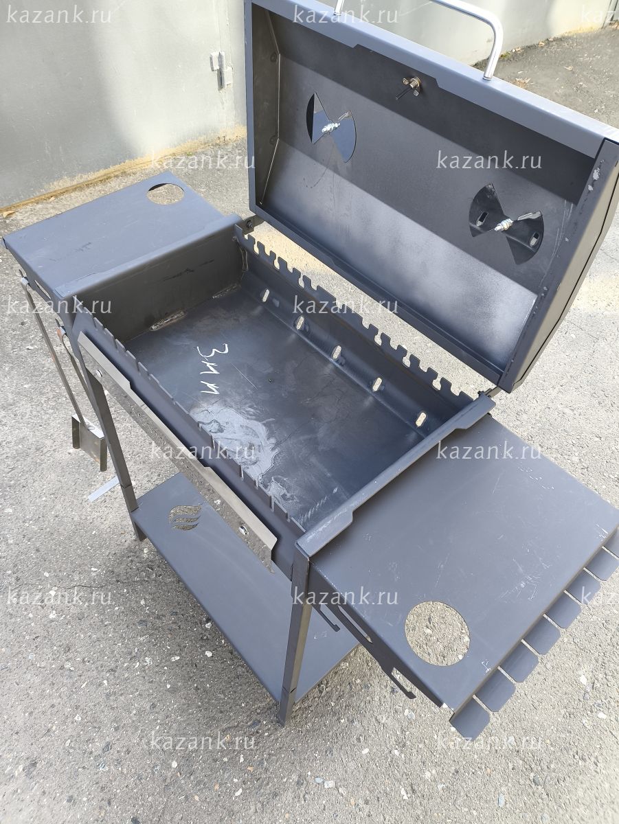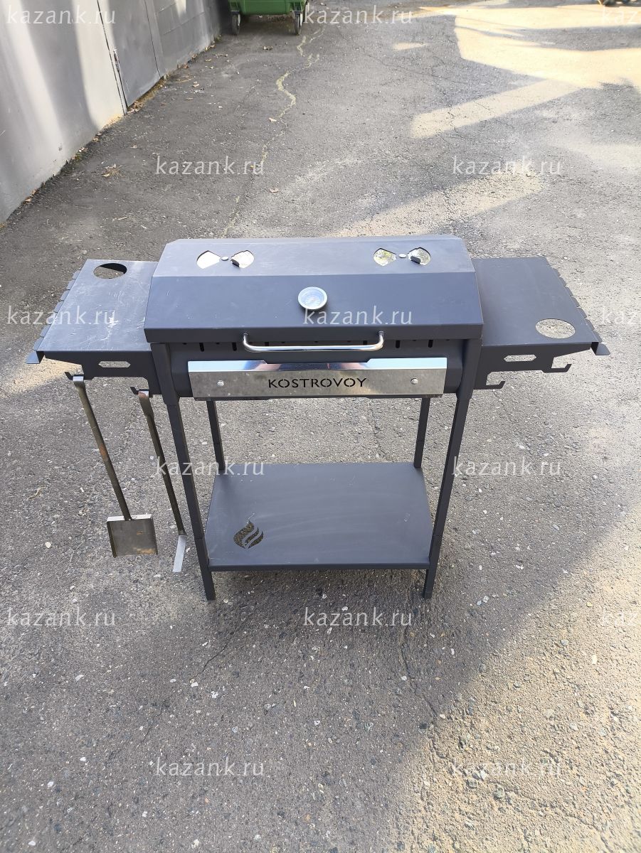 Разборный мангал для готовки стоя с двумя полками и крышкой.