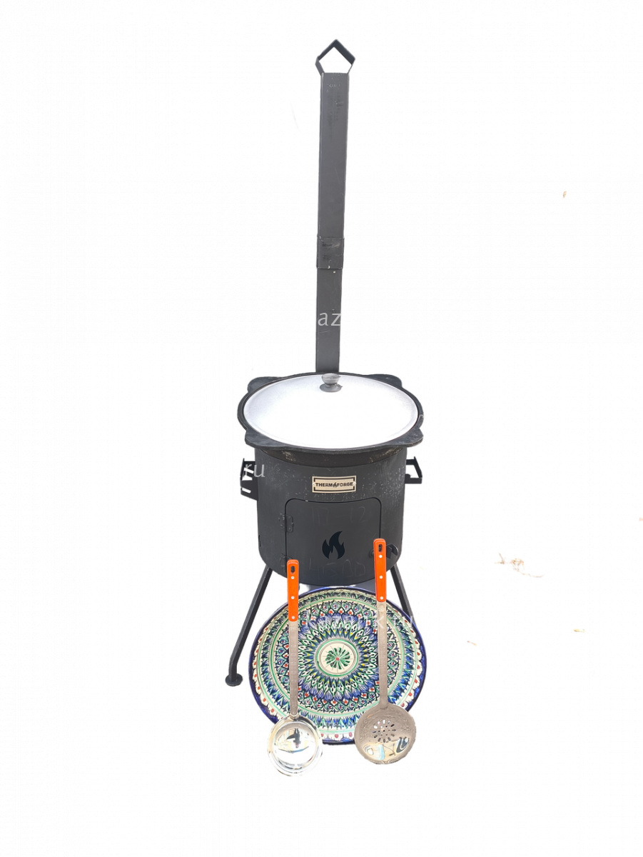 Набор состоит из казана, печи, шумовки, половника и лягана.