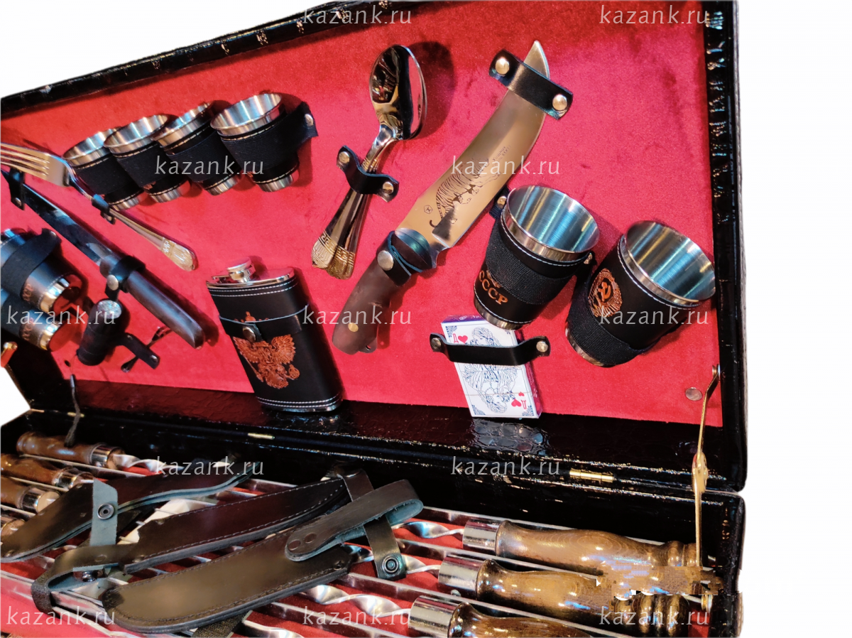 Кизлярский подарочный набор шампуров в кейсе. Шампура из нержавеющей стали. Нож кизлярский из стали 65х13.