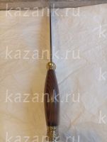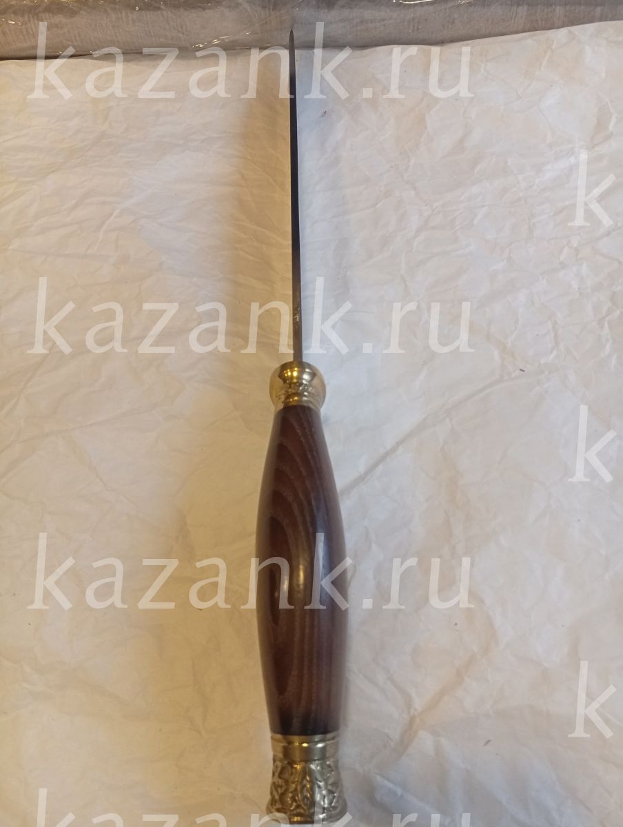 Нож Казачий пластунский х12мф ,кованный. Общая длина 350мм; Длина клинка 220мм; Ширина клинка 32 мм;Толщина клинка 4 мм; Диаметр рукояти 130мм;  В комплекте кожанные ножны и сертификат,что нож не является холожным оружием!  Рукоять дерево венге+латунь;