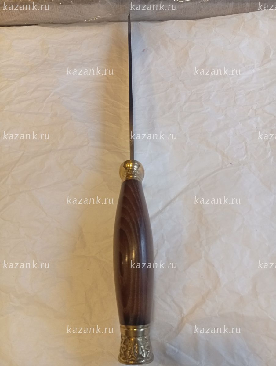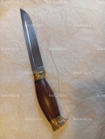 Нож Казачий пластунский х12мф ,кованный. Общая длина 350мм; Длина клинка 220мм; Ширина клинка 32 мм;Толщина клинка 4 мм; Диаметр рукояти 130мм;  В комплекте кожанные ножны и сертификат,что нож не является холожным оружием!  Рукоять дерево венге+латунь;