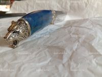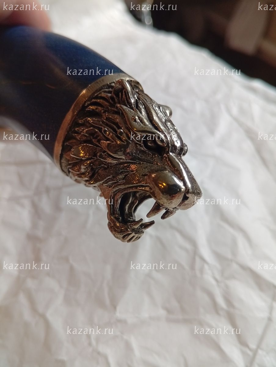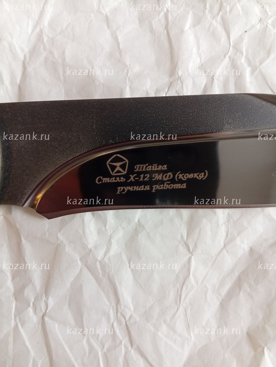 Нож Тайга сталь Х12мф кованый, ручная работа; Рукоять литье голова тигра+карельская береза; Общая длина 283 мм; Длина клинка 155 мм; Ширина клинка 34мм;Толщина клинка 4 мм; Длина рукоятки 128 мм; Твердость клинка 60-62 HRC. В комплекте идет  сертификат и кожанные ножны.
