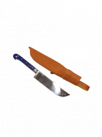Пчак- национальный Узбекский нож выполненный из углеродистой кованной стали ШХ-15(подшипниковая сталь). Лезвие имеет форму бритвы т.е спуск начинается сразу от обуха. Такой вид заточки позволяет резать мясо, рыбу, фрукты и овощи. Пчаком не рекомендуется рубить кости и грубые продукты. Во избежание коррозии- после использования ножа, лезвия всегда насухо протирать и иногда смазывать маслом.