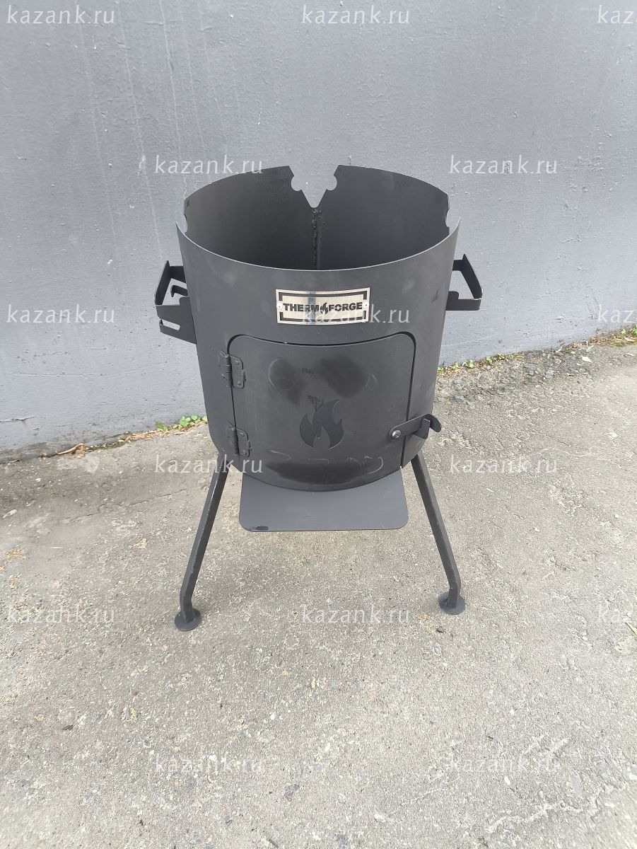 Очаг для казана 6-8л с дверцей.d-32см.сталь 2 мм. Съемные ноги. Ручка пруток. Окрашена термокраской.