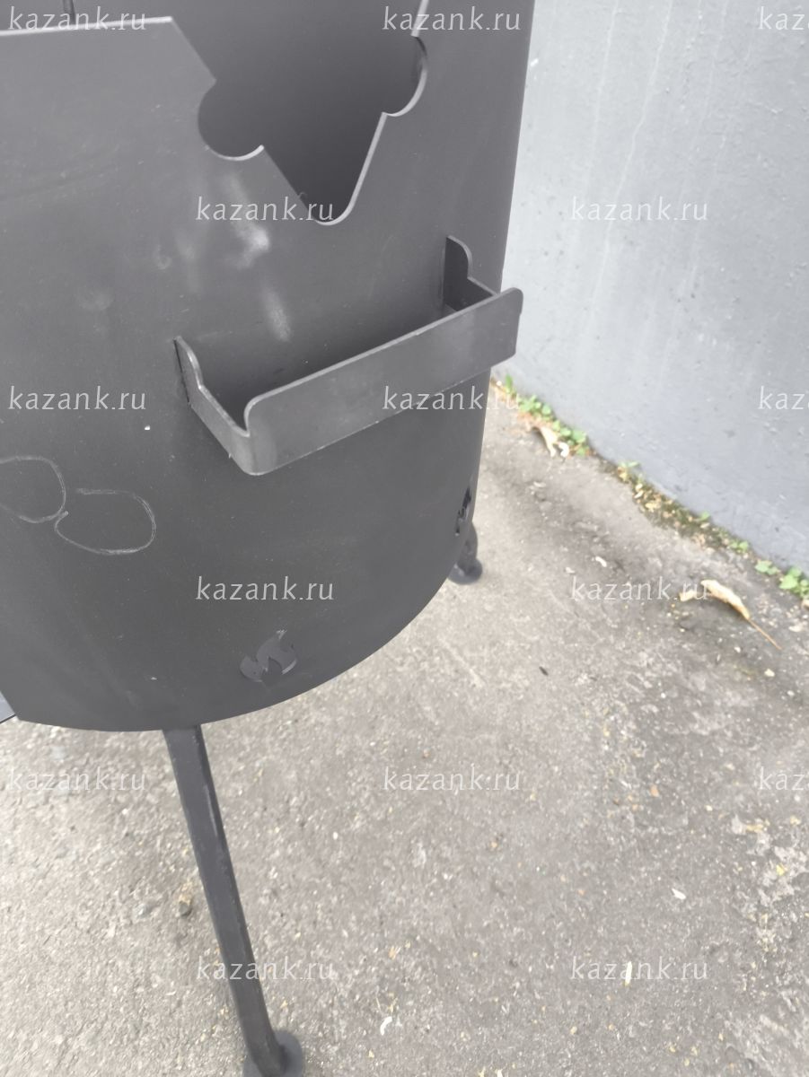 Печь выполнена методом лазерной резки, что гарантирует ровный край без заусенцев и окалин. Ножки съемные для удобства транспортировки при выезде на природу или дачу. Ручки-пруток, для удобства переноски (не режет руки). Казан в такой печи имеет идеальное заглубление и как следствие полный прогрев. Дым в печи выходит возле казана и насыщает блюдо запахом дымка.