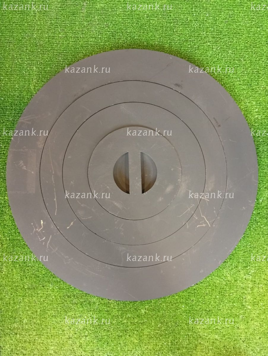 Плита d-40 см из черного металла 4мм с сегментироваными кругами для печи, буржуйки или мангала. Плита окрашена термокраской. Плита имеет сегменты разных диаметров для использования разной посуды.