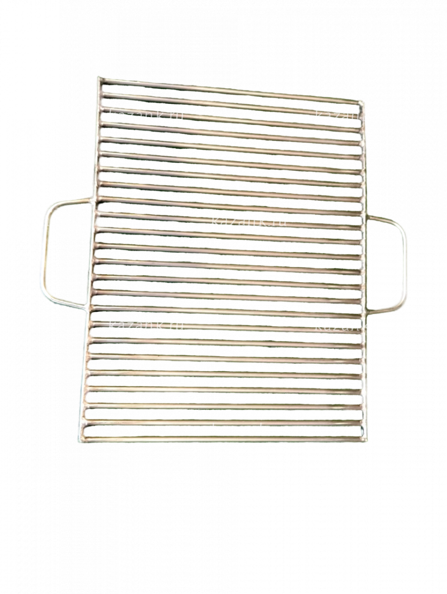 Решетка гриль с размерами 40*32см(без ручек) из нержавеющей стали с толщиной прутка 6мм подойдет для большинства мангалов. На углах рещетки наварены ограничители для устойчивости на мангале. При приготовлении на решетке мясо получается более сочное(не давится)+оно жарится за счет нагрева самой решетки. На решетке мясо меньше горит за счет толщины прутка. Такую решетку проста в обслуживании: можно оставить на улице(не заржавеет), не требует мытья(дстаточно щетки по металлу). Толщина позволит пользоваться решеткой долгие годы!