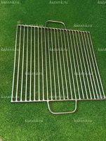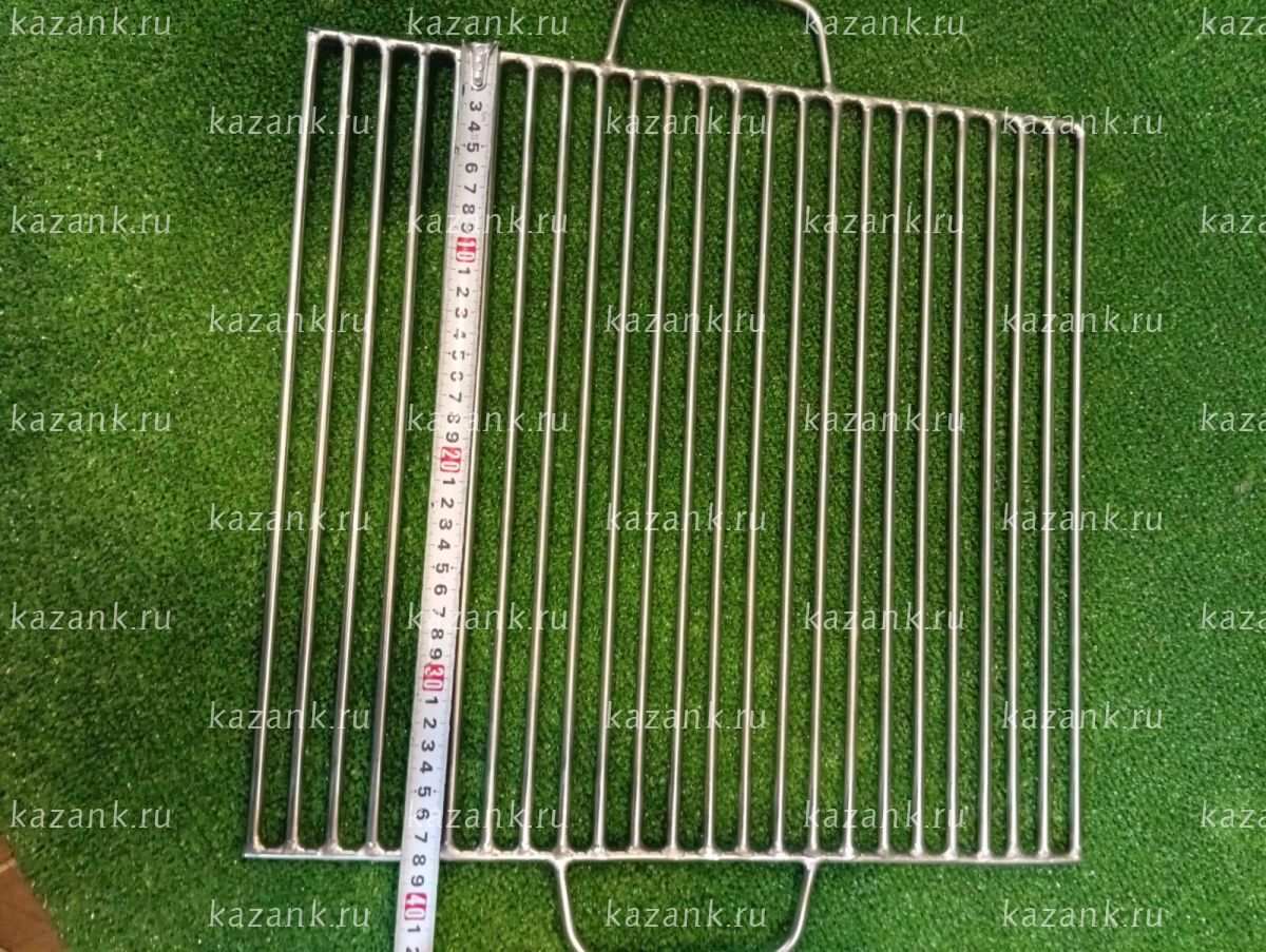 Решетка гриль с размерами 40*38см(без ручек) из нержавеющей стали с толщиной прутка 6мм подойдет для большинства мангалов. На углах рещетки наварены ограничители для устойчивости на мангале. При приготовлении на решетке мясо получается более сочное(не давится)+оно жарится за счет нагрева самой решетки. На решетке мясо меньше горит за счет толщины прутка. Такую решетку проста в обслуживании: можно оставить на улице(не заржавеет), не требует мытья(дстаточно щетки по металлу). Толщина позволит пользоваться решеткой долгие годы!