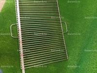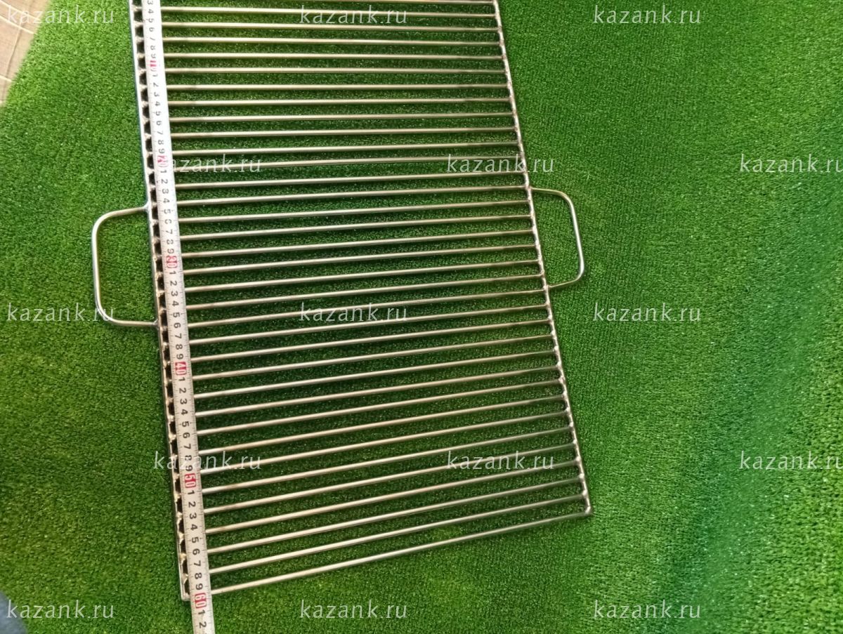 Решетка гриль с размерами 40*60см(без ручек) из нержавеющей стали с толщиной прутка 6мм подойдет для большинства мангалов. На углах рещетки наварены ограничители для устойчивости на мангале. При приготовлении на решетке мясо получается более сочное(не давится)+оно жарится за счет нагрева самой решетки. На решетке мясо меньше горит за счет толщины прутка. Такую решетку проста в обслуживании: можно оставить на улице(не заржавеет), не требует мытья(дстаточно щетки по металлу). Толщина позволит пользоваться решеткой долгие годы!