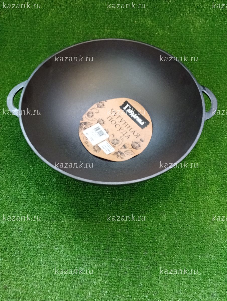 Сковорода ВОК очень удобна, для приготовления вкусной и полезной еды. Также основное преимущество сковороды вок -ее полусферическая форма. Благодаря данному факту, сковорда прогревается и прогревает пищу со всех сторон равномерно, не давая ей подгореть. Можно использовать как сковороду, а так же как  казан. Удобные две ручки.