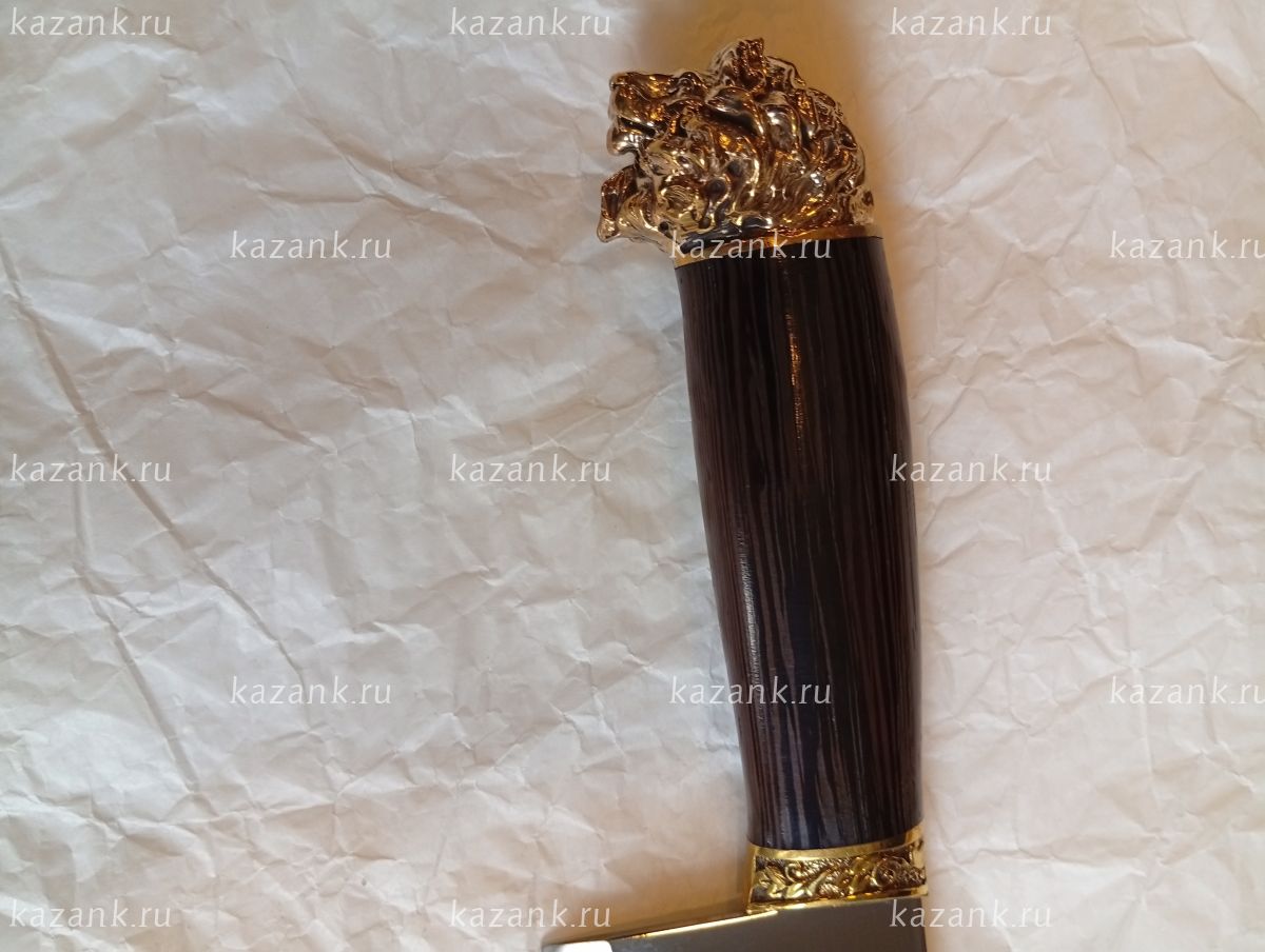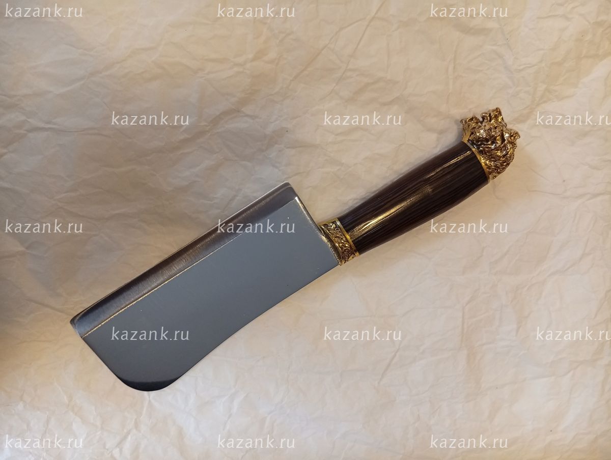 Топорик с головой Льва; Нержавеющая сталь 65х13; Рукоять дерево венге+ латунь; Толщина лезвия 2,2 мм; Общая длина 295 мм; Длина лезвия 160 мм