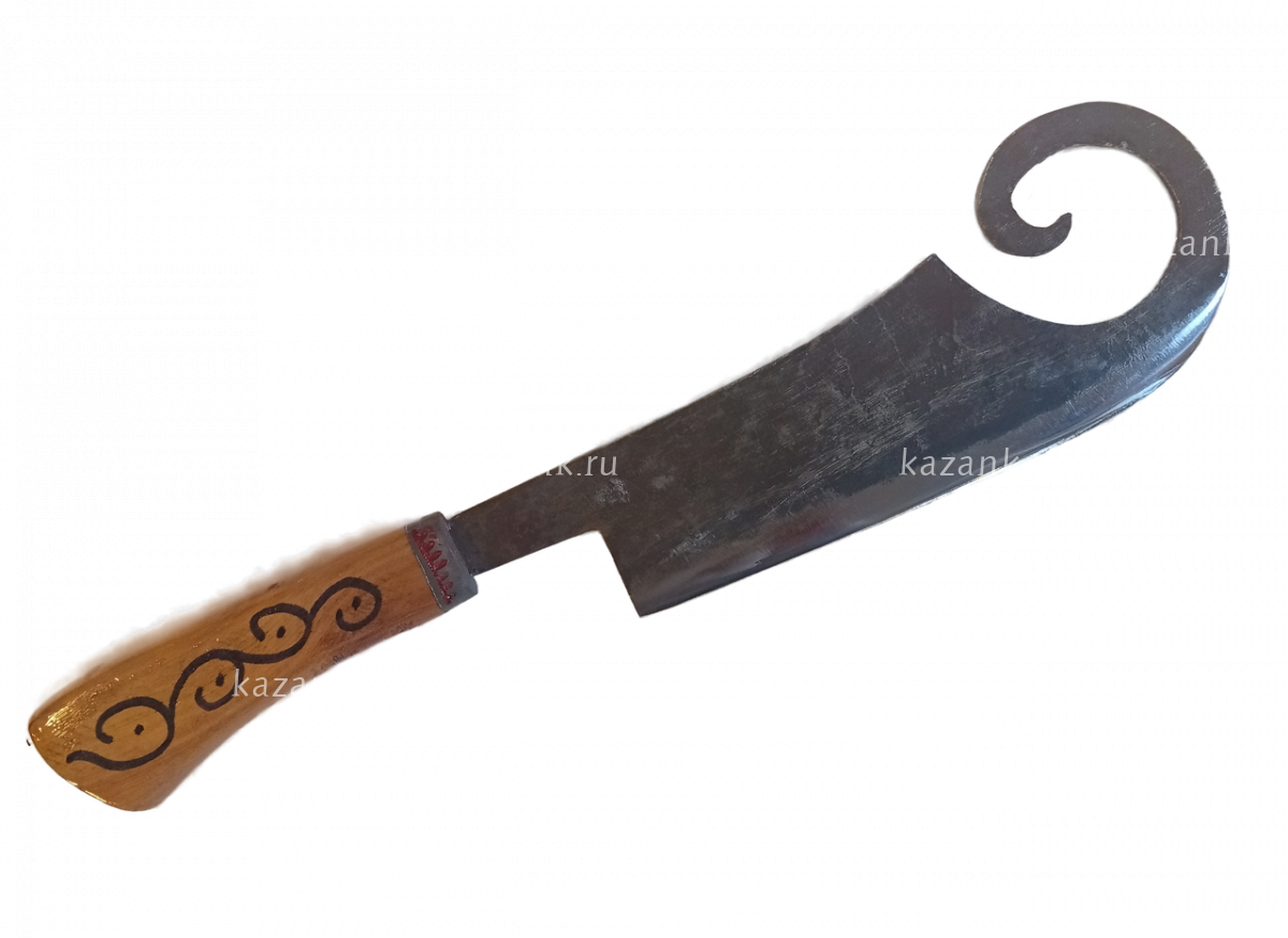 Национальный Узбекский топрик выполненный из углеродистой кованной стали ШХ-15(подшипниковая сталь).  Таким топориком  можно резать мясо, рыбу, фрукты, овощи или рубить кости. Во избежание коррозии- после использования ножа, лезвия всегда насухо протирать и иногда смазывать маслом.