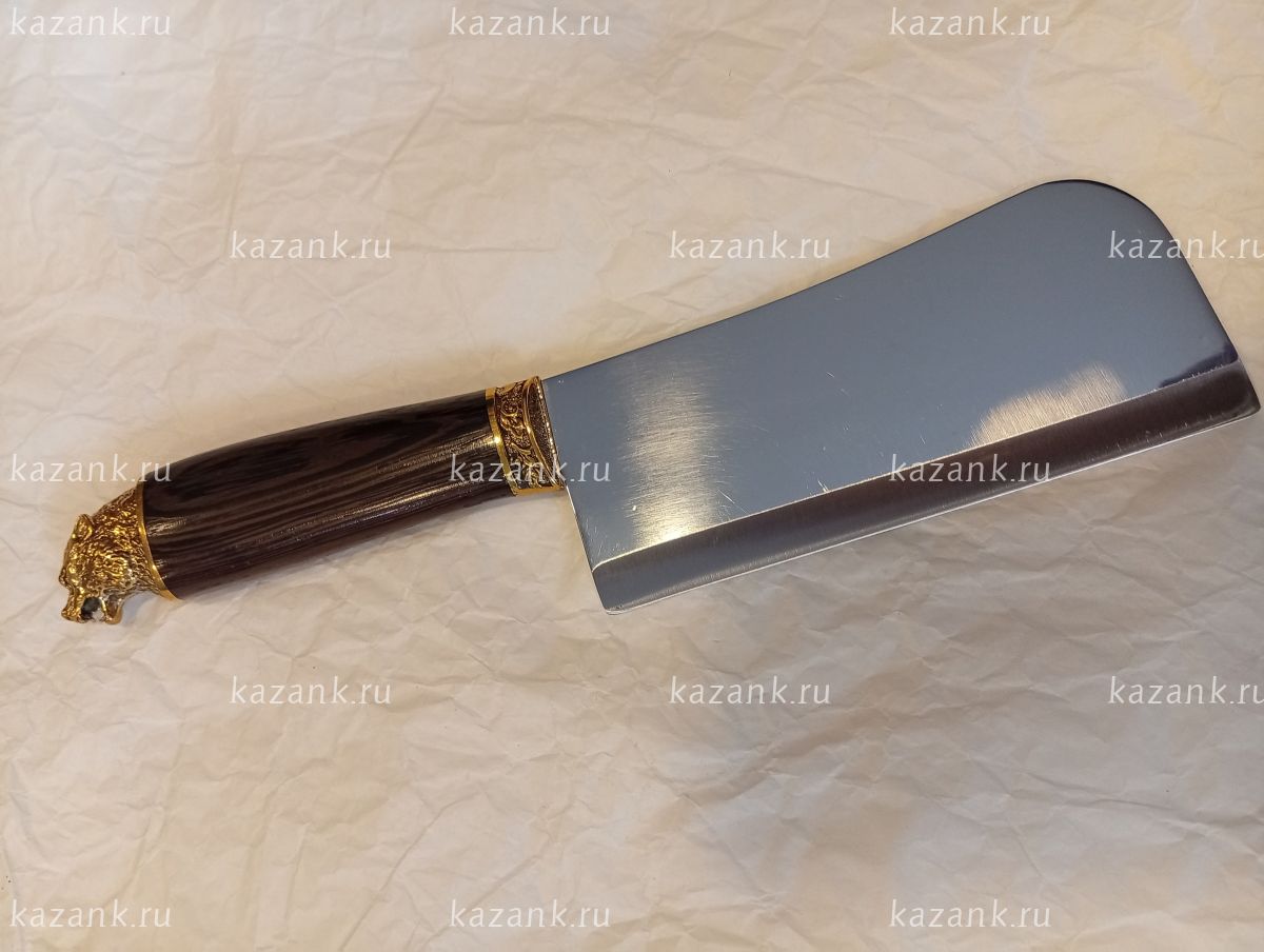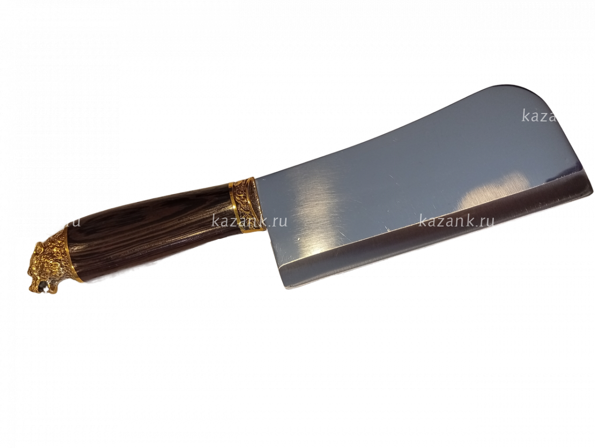 Топорик с головой Волка; Нержавеющая сталь 65х13; Рукоять дерево венге+ латунь; Толщина лезвия 2,2 мм; Общая длина 295 мм; Длина лезвия 160 мм
