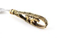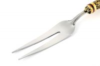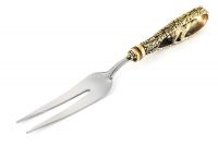 Вилка выполнена из нержавеющей стали. Ручка с художественным литьем в виде контура и внутри лесной зверь.С такой же ручкой можно приобрести шампура. В контуре вилки может быть отличный от фото лесной зверь.