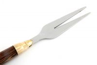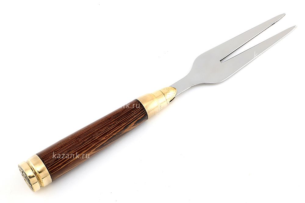 Вилка выполнена из нержавеющей стали. Ручка из дерева венге с художественным литьем из латуни в виде Патрона.С такой же ручкой можно приобрести шампура.